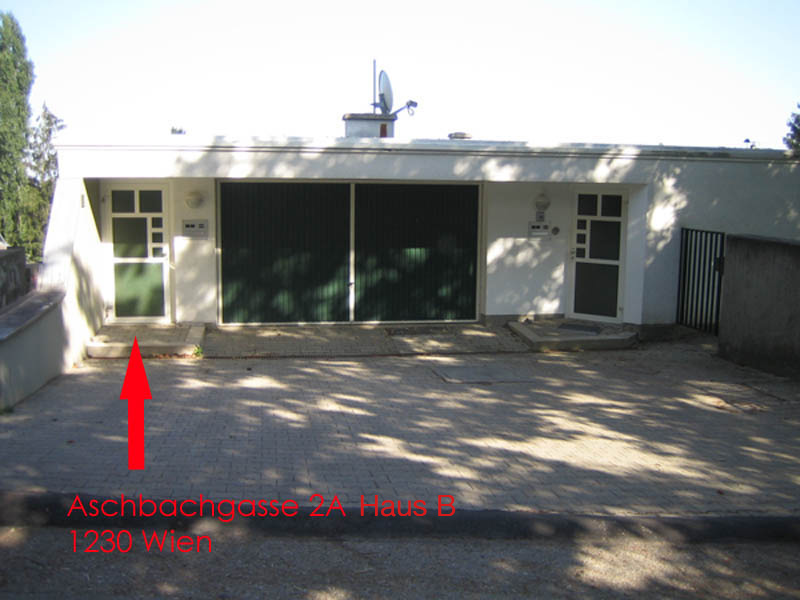 Adresse: Aschbachgasse 2A Haus B 1230 Wien. Bitte nicht am Vorplatz vor dem Haus/Garage parken und beachten, dass die linke Türe der Eingang ist. Es gilt, wie in ganz Wien die Kurzparzone. Unter der Woche kann man bei der Wittgensteinstarsse 160 kostenlos parken und geht dann 13 Minuten in die Aschbachgasse. Öffentlich mit der Strassenbahn 60 bis Franz Asenbauergasse 18 Minuten zu Fuß (sehr schöner Spaziergang) oder Maurer Hauptplatz 17 Min. zu Fuß (schöner Spaziergang) Der kürzeste Fußweg ist von der Busstation 56A und 60A Valentingasse. Fußweg 11 Minuten.